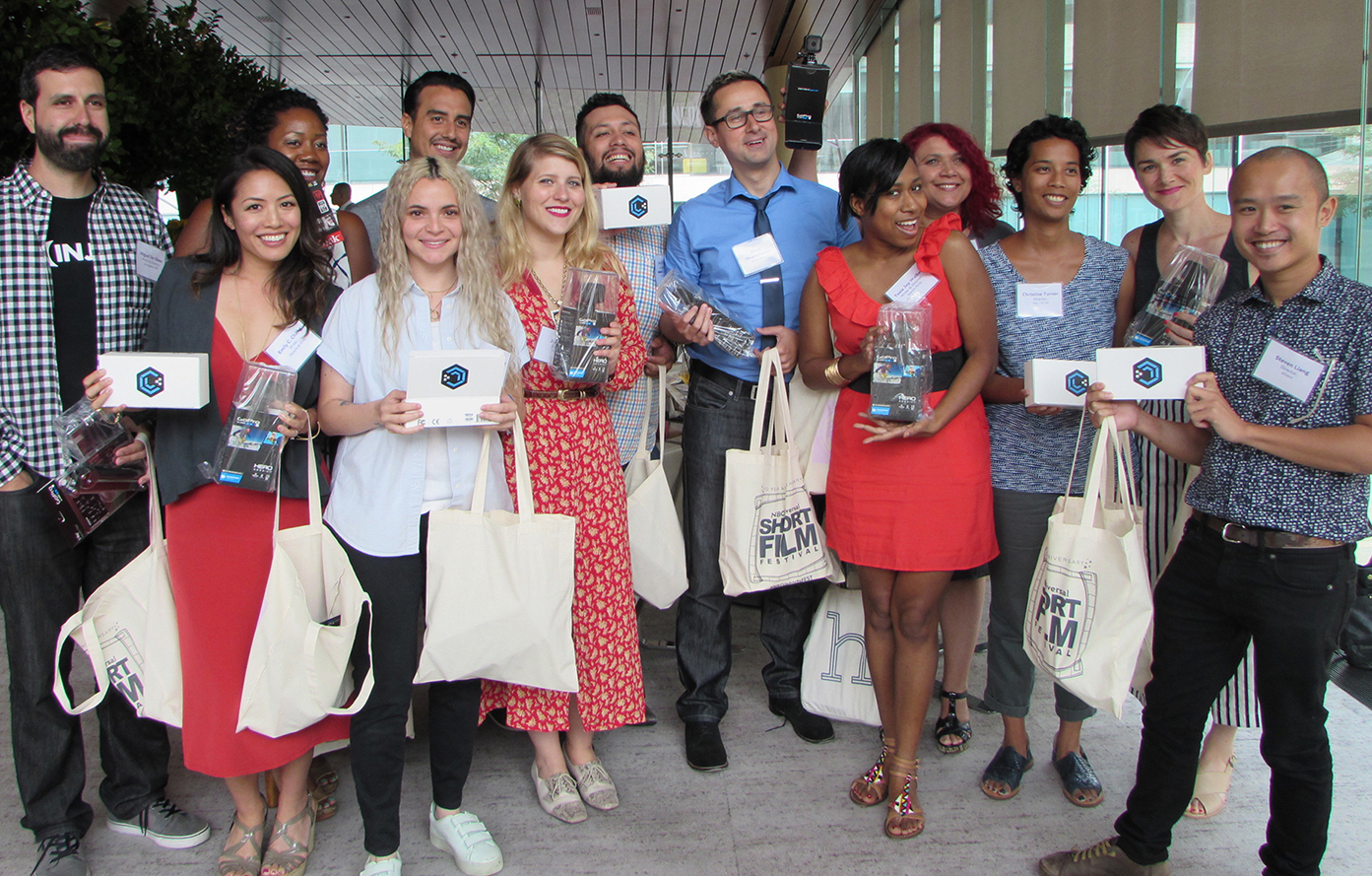 In addition, all semi-finalists received complimentary airfare and hotel accommodations for the NYC semi-finals, which included a SAG-Aftra Kickoff Reception, a WGAE-sponsored roundtable, a Filmmaker Luncheon sponsored by Universal Pictures, as well as filmmaker kits from GoPro (pictured bottom left). All finalists then also received complimentary airfare and hotel accommodations for the week leading up to the Los Angeles festival finale, which included a WGAW-sponsored Breakfast and Library Tour, a Panavision Luncheon and Equipment Tour, a VIP Universal Lot Tour, Complimentary Branding Workshops with Keldof's Kevin Seldon, as well as an array of prizes from the opportunity to stream their film on the NBCU Festival Hulu Channel, to a Miroir mini HD projector, premiere software editions of both Movie Magic Budgeting and Scheduling, a GTech 1TB hard drive, and an annual subscription to THR.com.